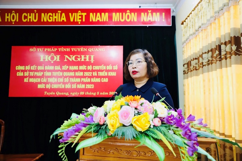 Ngày 09/5/2023, Sở Tư pháp tỉnh Tuyên Quang đã tổ chức Hội nghị công bố kết quả đánh giá, xếp hạng mức độ chuyển đổi số đối với Sở Tư pháp tỉnh Tuyên Quang năm 2022 và triển khai Kế hoạch cải thiện chỉ số thành phần nâng cao mức độ chuyển đổi số năm 2023. Đồng chí Nguyễn Thị Thược, Tỉnh uỷ viên, Giám đốc Sở Tư pháp dự và chủ trì Hội nghị.