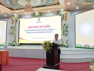 Ngày 28/6/2023, tại Nhà khách Nghệ An, Cục Hộ tịch, quốc tịch, chứng thực tổ chức Hội nghị tập huấn kỹ năng triển khai thực hiện các nhiệm vụ của Đề án 06 trong lĩnh vực hộ tịch. Tham dự có đồng chí Nhâm Ngọc Hiển – Phó Cục trưởng Cục Hộ tịch, quốc tịch, chứng thực; các đồng chí lãnh đạo Sở Tư pháp, phòng chuyên môn thuộc Sở, một công chức tư pháp cấp huyện và công chức tư pháp hộ tịch cấp xã của 11 tỉnh, thành phố trực thuộc Trung ương.