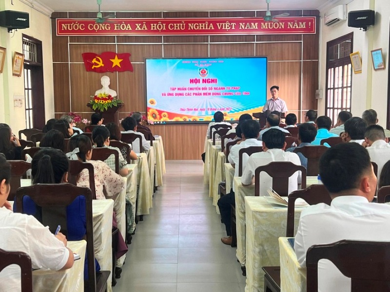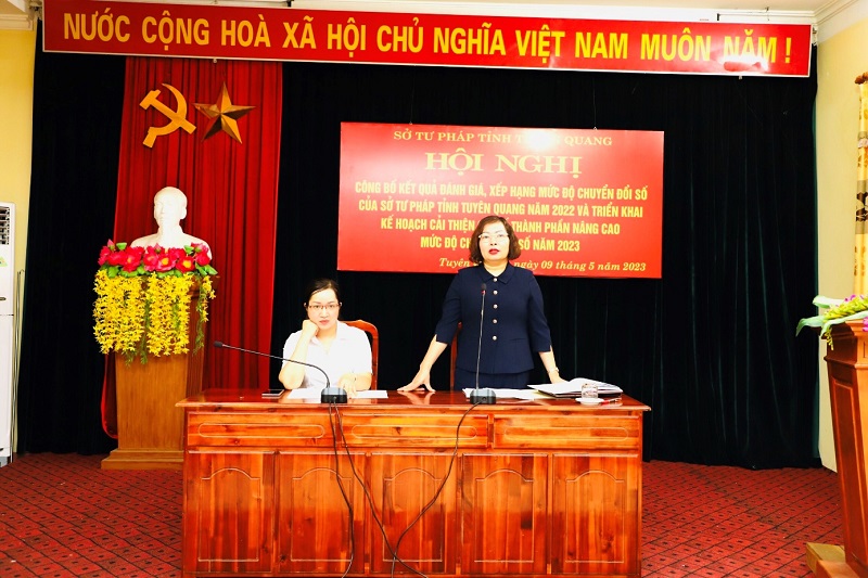 Ngày 09/5/2023, Sở Tư pháp tỉnh Tuyên Quang đã tổ chức Hội nghị công bố kết quả đánh giá, xếp hạng mức độ chuyển đổi số đối với Sở Tư pháp tỉnh Tuyên Quang năm 2022 và triển khai Kế hoạch cải thiện chỉ số thành phần nâng cao mức độ chuyển đổi số năm 2023. Đồng chí Nguyễn Thị Thược, Tỉnh uỷ viên, Giám đốc Sở Tư pháp dự và chủ trì Hội nghị.