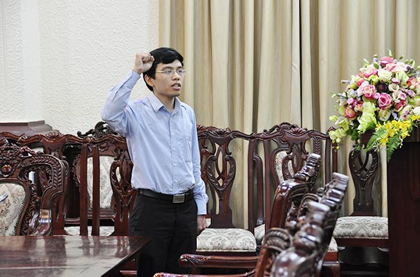 Sau khi nhận quyết định từ Bí thư Chi bộ, dưới cờ Tổ quốc, cờ Đảng và chân dung Chủ tịch Hồ Chí Minh, cùng sự chứng kiến của Chi bộ, các đảng viên và các đại biểu, các đồng chí đảng viên mới đã đọc lời tuyên thệ của đảng viên Đảng Cộng sản Việt Nam, hứa sẽ tiếp tục phấn đấu để luôn xứng đáng là người đảng viên gương mẫu, đóng góp sức mình thực hiện thành công nhiệm vụ chính trị của Chi bộ, góp phần xây dựng Chi bộ ngày càng vững mạnh.