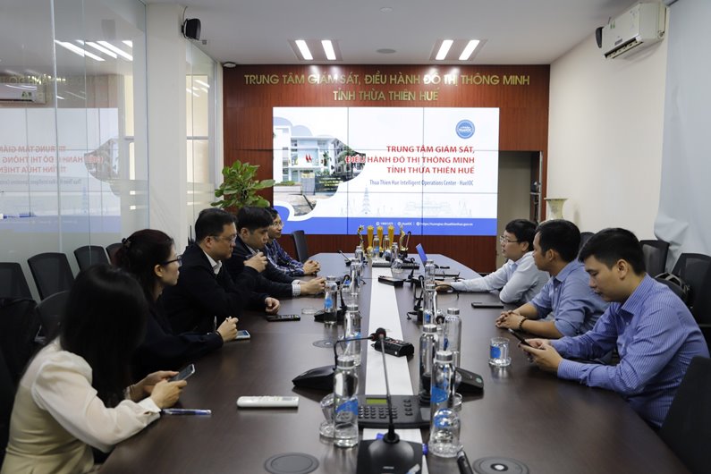 Cũng nhân dịp này, Đoàn công tác đã đến tham quan, tìm hiểu và trao đổi kinh nghiệm về mô hình Chuyển đổi số, đô thị thông minh tại Trung tâm Giám sát, điều hành đô thị thông minh (IOC), Sở Thông tin và Truyền thông tỉnh Thừa Thiên Huế.