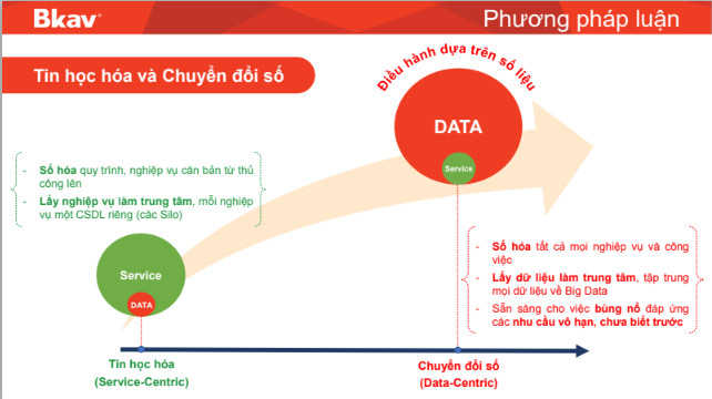 "Để thực hiện Chuyển đổi số hiệu quả và thực chất phải hiểu và nắm chắc được nguyên tắc, đó là lấy dữ liệu làm trung tâm. Khi đã có được cơ sở dữ liệu số thì nền tảng công nghệ hoàn toàn có thể đáp ứng và đảm bảo việc chuyển đổi số hiệu quả” - Giám đốc Tập đoàn công nghệ BKAV Nguyễn Tử Quảng nhấn mạnh.