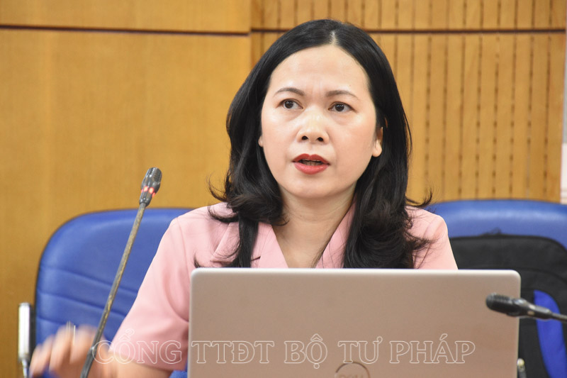 Đồng chí Đỗ Thị Hảo, đại diện Cục Công nghệ thông tin, Bộ Tư pháp trình bày Chuyên đề hướng dẫn tại Hội nghị.