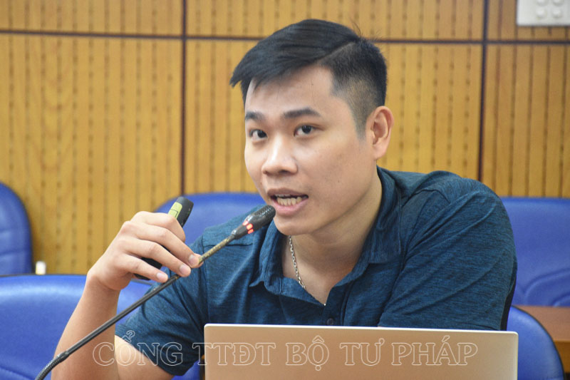 Phó Giám đốc Trung tâm Lý lịch tư pháp quốc gia Phạm Quang Đại cùng các Báo cáo viên giải đáp các câu hỏi tại Hội nghị.