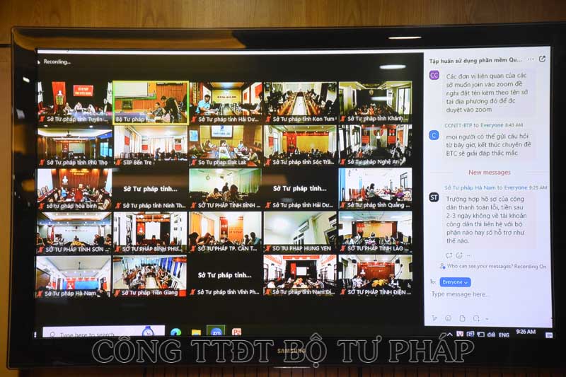 Hội nghị tập huấn được kết nối trực tuyến tới 63 điểm cầu Sở Tư pháp địa phương.