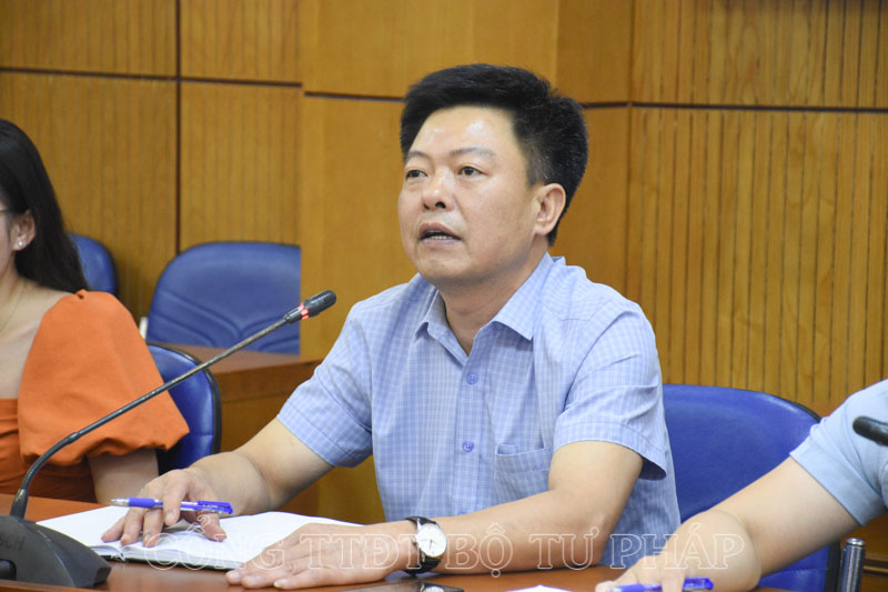 Phó Cục trưởng Cục Công nghệ thông tin, Bộ Tư pháp Phạm Đức Dụ phát biểu tại Hội nghị.