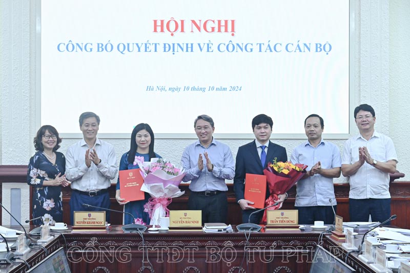 Theo đó, bổ nhiệm đồng chí Phạm Quang Hiếu, Quyền Cục trưởng Cục Công nghệ thông tin giữ chức vụ Cục trưởng Cục Công nghệ thông tin; bổ nhiệm đồng chí Tô Thị Thu Hà, Trưởng phòng Phòng Truyền thông chính sách, phổ biến giáo dục pháp luật giữ chức vụ Phó Cục trưởng Cục Phổ biến, giáo dục pháp luật kể từ ngày 01/10/2024.