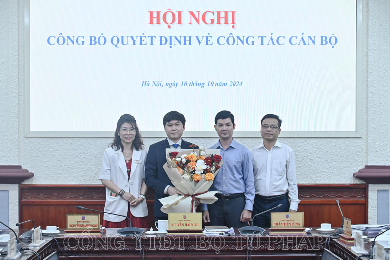 Thứ trưởng mong muốn với bề dày kinh nghiệm công tác, các đồng chí mới được bổ nhiệm sẽ tiếp tục phát huy những thế mạnh của mình, đưa công tác của các đơn vị ngày càng phát triển, góp phần tích cực vào việc hoàn thành xuất sắc các nhiệm vụ chính trị của Bộ, ngành Tư pháp. Thứ trưởng cũng đề nghị các đơn vị thuộc Bộ sẽ tiếp tục phối hợp, hỗ trợ, giúp đỡ các đồng chí thực hiện tốt các nhiệm vụ được giao.