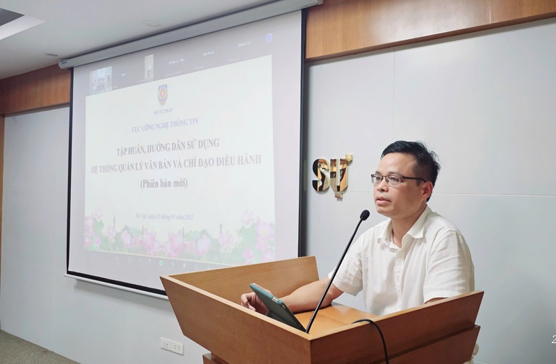 Để sử dụng thử nghiệm Hệ thống Quản lý văn bản và điều hành (Phiên bản mới) được hiệu quả, Cục Công nghệ thông tin tổ chức lớp tập huấn, hướng dẫn văn thư, cán bộ phụ trách về chuyển đổi số các đơn vị thuộc Bộ sử dụng Hệ thống trên. Đồng chí Phạm Đức Dụ, Phó Cục trưởng Cục Công nghệ thông tin mong muốn các đại biểu sẽ tập trung lắng nghe và trao đổi, thảo luận những vướng mắc, khó khăn trong quá trình sử dụng để Cục Công nghệ thông tin tiếp tục hoàn thiện, nâng cấp Hệ thống Quản lý văn bản và điều hành.