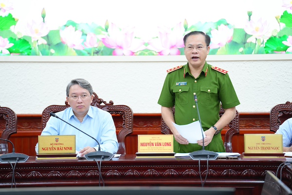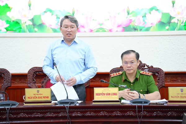 Thay mặt Bộ Tư pháp, Bộ trưởng Nguyễn Hải Ninh trân trọng cảm ơn Thượng tướng Nguyễn Văn Long và các đồng chí trong Bộ Công an thời gian vừa qua đã rất quan tâm, hỗ trợ tích cực cho Bộ Tư pháp trong hoàn thiện CSDL và những nội dung khác liên quan đến việc triển khai các nhiệm vụ của Ban Chỉ đạo. Bộ trưởng chia sẻ, khi nhận nhiệm vụ ở Bộ Tư pháp, Phó Thủ tướng Lê Thành Long, nguyên Bộ trưởng đã bàn giao và dặn dò một trong những nhiệm vụ trọng tâm của Bộ Tư pháp trong thời gian tới là phải tập trung quyết liệt vào công tác chuyển đổi số.