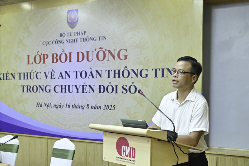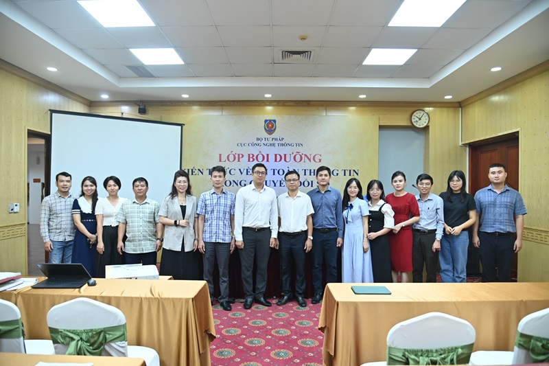 Nhằm cập nhật kiến thức chuyên sâu, trang bị kỹ năng nhận diện và xử lý các rủi ro về an toàn thông tin trong môi trường số cho cán bộ, công chức, viên chức các đơn vị thuộc Bộ Tư pháp, Cục Công nghệ thông tin tổ chức Lớp bồi dưỡng kiến thức về an toàn thông tin trong chuyển đổi số. Lớp bồi dưỡng có sự tham gia giảng dạy của đội ngũ cán bộ có chuyên môn cao đến từ Cục An ninh mạng và phòng, chống tội phạm sử dụng công nghệ cao (A05) – Bộ Công an. Đây là lực lượng chuyên trách, giữ vai trò nòng cốt trong công tác đảm bảo an ninh mạng quốc gia và phòng chống tội phạm công nghệ cao hiện nay.