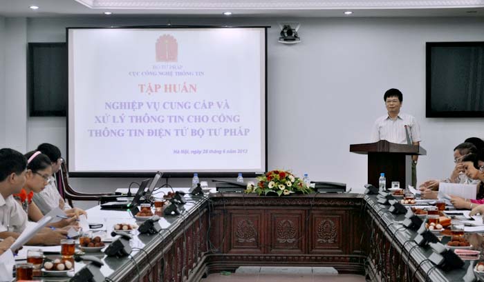 Phát biểu khai mạc, ông Lê Văn Duyên – Phó Cục trưởng Cục Công nghệ thông tin cho biết mục đich của việc mở lớp tập huấn là nhằm nâng cao chất lượng tin bài trên Cổng Thông tin và hiệu quả phối hợp giữa các đơn vị trong việc cung cấp thông tin. Từ đó, góp phần tuyên truyền có hiệu quả các chủ trương, đường lối của Đảng, pháp luật của Nhà nước đến nhân dân; phản ánh thông tin một cách toàn diện, khách quan, kịp thời về các lĩnh vực hoạt động của ngành Tư pháp, hỗ trợ Bộ, ngành thực hiện tốt các nhiệm vụ được Đảng, Nhà nước giao phó, góp phần phục vụ tốt hơn nhu cầu của tổ chức, doanh nghiệp và người dân.
