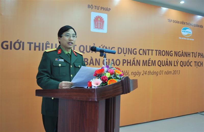 Phát biểu tại buổi lễ, ông Hoàng Sơn, Giám đốc Công ty Viễn thông Viettel đại diện cho Tập đoàn viễn thông Quân đội Viettel cam kết sẽ tiếp tục hợp tác, cung cấp cho Bộ Tư pháp những dịch vụ công nghệ thông tin, viễn thông và các dịch vụ khác tốt nhất và bảo mật nhất.