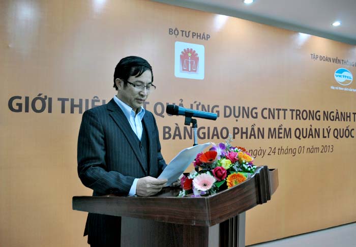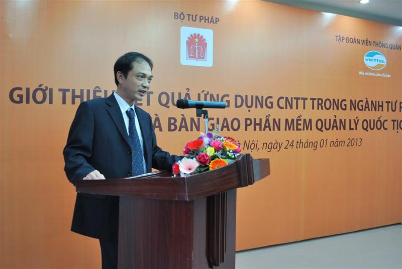 Cũng tại buổi lễ, Thứ trưởng Bộ Tư pháp Đinh Trung Tụng đã đánh giá cao những kết quả hợp tác về ứng dụng công nghệ thông tin - viễn thông đã đạt được giữa Cục Công nghệ thông tin - Bộ Tư pháp với Tập đoàn viễn thông Quân đội Viettel trong thời gian qua. Thứ trưởng mong rằng trong thời gian tới, Cục Công nghệ thông tin sẽ tiếp tục phối hợp tốt với các đơn vị hữu quan xây dựng, triển khai những ứng dụng về công nghệ thông tin và viễn thông, góp phần đẩy mạnh cải cách hành chính, đảm bảo công khai, minh bạch hơn trong hoạt động của Bộ, của ngành, phục vụ người dân và doanh nghiệp tốt hơn, tạo điều kiện để nhân dân thực hiện tốt quyền và nghĩa vụ công dân, phấn đấu xây dựng Ngành ngày càng phát triển.