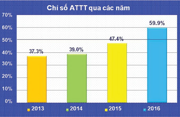 Theo báo cáo tổng hợp kết quả điều tra, đánh giá thực trạng an toàn thông tin (ATTT) tại Việt Nam năm 2016 của Hiệp hội An toàn thông tin Việt Nam (VNISA), Chỉ số ATTT Việt Nam (Vietnam Information Security Index) 2016 là 59,9% - tăng 12,5% so với mức 47,4% năm 2015 (chỉ số này các năm 2014 và 2013 lần lượt là 39% và 37,3%) và lần đầu tiên vượt mức trung bình 50% của thế giới. Chỉ số này có xu hướng tăng bền vững qua các năm, thể hiện định hướng kiên định của Nhà nước và cộng đồng trong phát triển ATTTT.