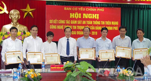 Tại Hội nghị, để vinh danh các tập thể và cá nhân đã có nhiều đóng góp trong công tác đảm bảo an toàn, an ninh thông tin, đồng chí Phó Trưởng ban Nguyễn Đăng Đào đã trao tặng Bằng khen của Trưởng ban Ban CYCP cho 07 tập thể và 07 cá nhân đã có thành tích xuất sắc trong công tác phối hợp giám sát đảm bảo ATTT giai đoạn 2013 - 2019.