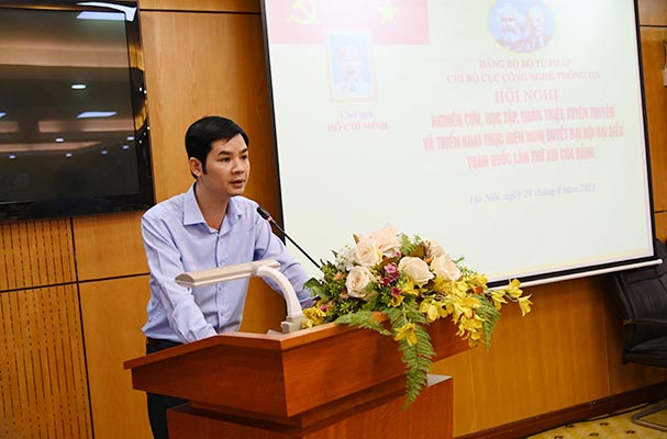 Phát biểu tại Hội nghị, Bí thư Chi bộ Cục Công nghệ thông tin Tạ Thành Trung nhấn mạnh, việc nghiên cứu, học tập, quán triệt Nghị quyết Đại hội đại biểu toàn quốc lần thứ XIII của Đảng là đợt sinh hoạt chính trị có ý nghĩa hết sức quan trọng về mặt nhận thức, nhằm giúp cán bộ, đảng viên của Cục nắm vững nội dung cốt lõi, những điểm mới trong các văn kiện; từ đó, thống nhất về ý chí và hành động trong quá trình triển khai thực hiện, góp phần sớm đưa nội dung Nghị quyết vào thực tiễn cuộc sống.