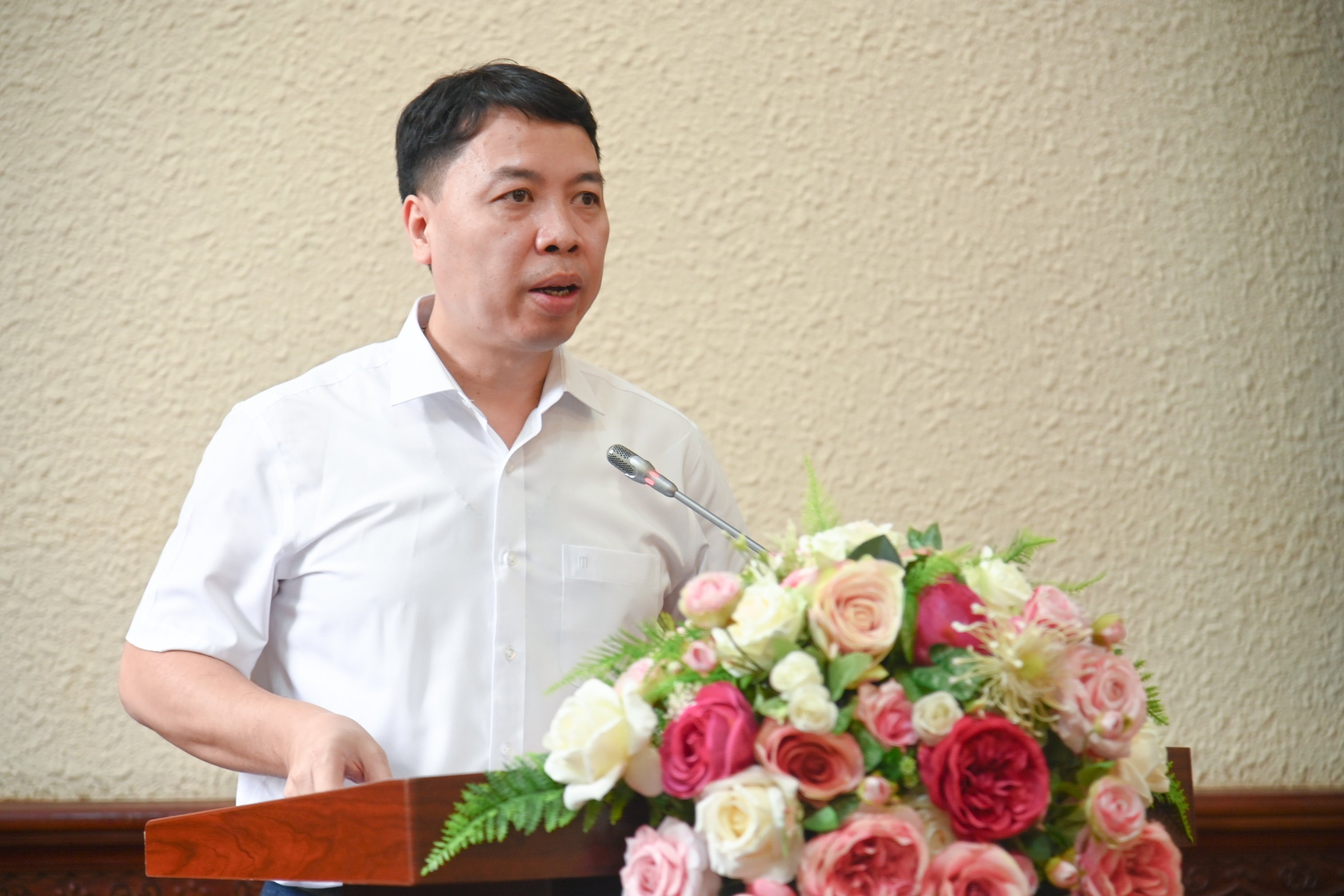 Đồng chí Trần Hoài Nam – Phó Chủ tịch Công đoàn Cục Công nghệ thông tin trình bày Báo cáo tổng kết hoạt động công đoàn nhiệm kỳ 2020 - 2023 và phương hướng hoạt động công đoàn nhiệm kỳ 2023-2028