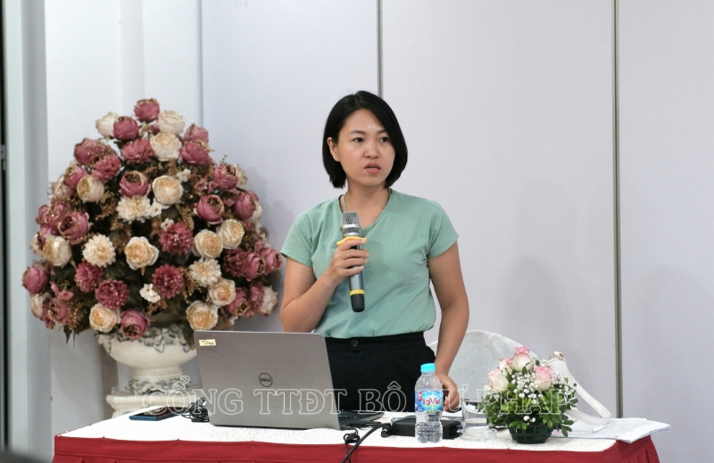 Đồng chí Trần Thị Kim Anh, Kỹ sư Công nghệ thông tin – Trung tâm thông tin, Cục CNTT, Bộ Tư pháp báo cáo tại buổi Tập huấn