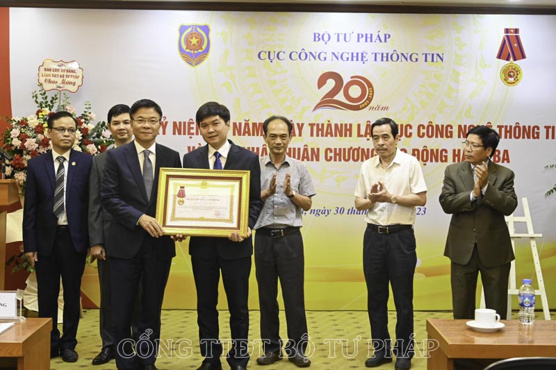 Với nỗ lực phấn đấu không ngừng và những đóng góp quan trọng, thiết thực, hiệu quả, Cục Công nghệ thông tin vinh dự được Chủ tịch nước trao tặng Huân chương Lao động hạng Ba - phần thưởng cao quý của Đảng, Nhà nước. Đây là món quà tinh thần vô giá, là phần thưởng có ý nghĩa to lớn, thể hiện sự ghi nhận của Đảng, Nhà nước và Lãnh đạo Bộ Tư pháp đối với sự phấn đấu, nỗ lực bền bỉ của nhiều thế hệ cán bộ, công chức, viên chức và người lao động của Cục Công nghệ thông tin trong suốt 20 năm xây dựng và trưởng thành.