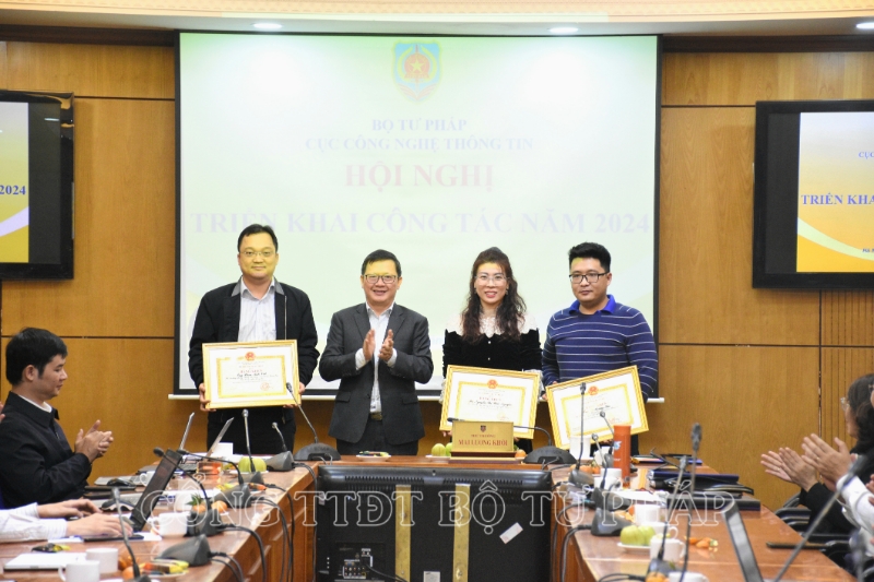 Nhân dịp này, thay mặt Ban cán sự Đảng, Lãnh đạo Bộ Tư pháp,  Thứ trưởng Mai Lương Khôi đã trao tặng Bằng khen của Bộ trưởng Bộ Tư pháp cho các cá nhân có thành tích xuất sắc trong công tác của Cục Công nghệ thông tin./.