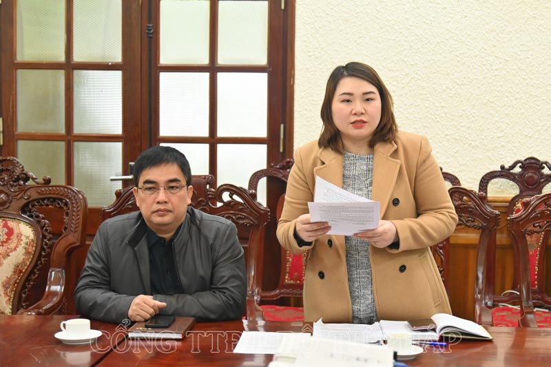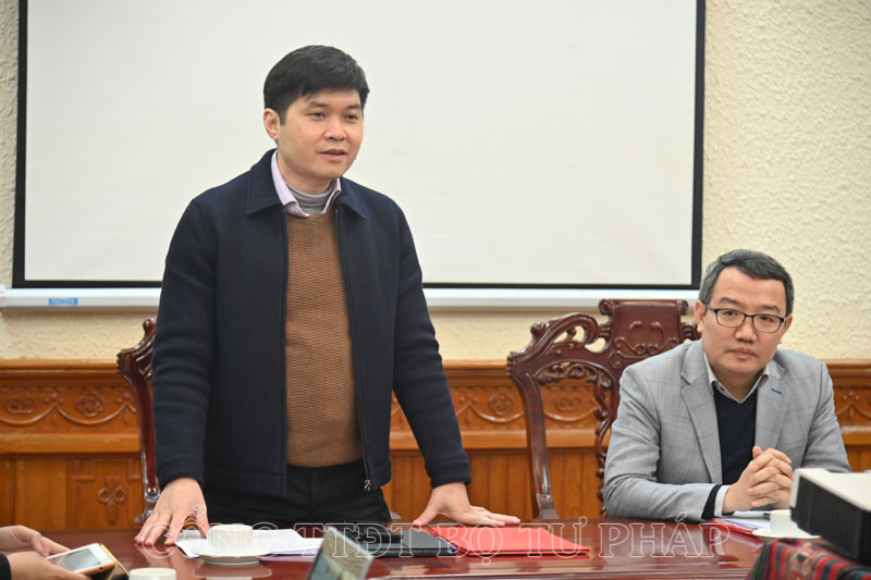 Đồng chí Trần Thanh Loan - Phó Chánh Văn phòng Cục Kiểm tra văn bản QPPL trình bày Quy chế phối hợp trong công tác quản lý, duy trì, cập nhật, khai thác, sử dụng Cơ sở dữ liệu quốc gia về pháp luật.