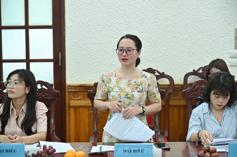 Đồng chí Nguyễn Thị Ngân, Phó Bí thư Đoàn Thanh niên Bộ Tư pháp ghi nhận và chúc mừng các thành tích đã đạt được trong nhiệm kỳ vừa qua của Chi đoàn Cục Công nghệ thông tin. Để hoàn thiện Báo cáo tổng kết nhiệm kỳ 2022-2024 của Chi đoàn Cục, đồng chí Nguyễn Thị Ngân đề nghị bổ sung một số nội dung như số lượng đoàn viên là nam, nữ; chuyên môn, trình độ của đoàn viên Chi đoàn...; từ đó có đánh giá tổng quan về đặc điểm, tình hình hoạt động của Chi đoàn. Đồng chí cũng đề nghị Chi đoàn Cục Công nghệ thông tin bám sát các hoạt động do Đoàn Thanh niên Bộ triển khai; thường xuyên cập nhật thông tin trên phần mềm Thanh niên Việt Nam; tiếp tục quan tâm, hỗ trợ các đoàn viên mới, đặc biệt là trong công tác chuyên môn của đơn vị...