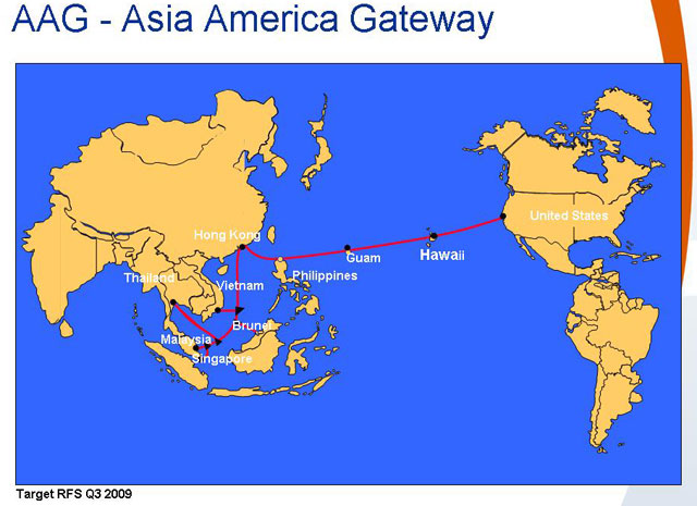 Dự án cáp quang biển AAG được khởi công tháng 4/2007, tổng vốn đầu tư khoảng 560 triệu USD với chiều dài gần 20.000 km, bắt đầu từ Malaysia và kết cuối tại Mỹ.